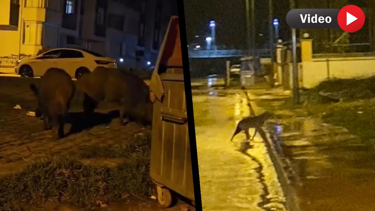 Karabük Mahallesi Gazi Aytekin Caddesi ile Emek Mahallesi'nde aç kalan domuzlar yiyecek ararken cep telefonu kameralarıyla kaydedildi.