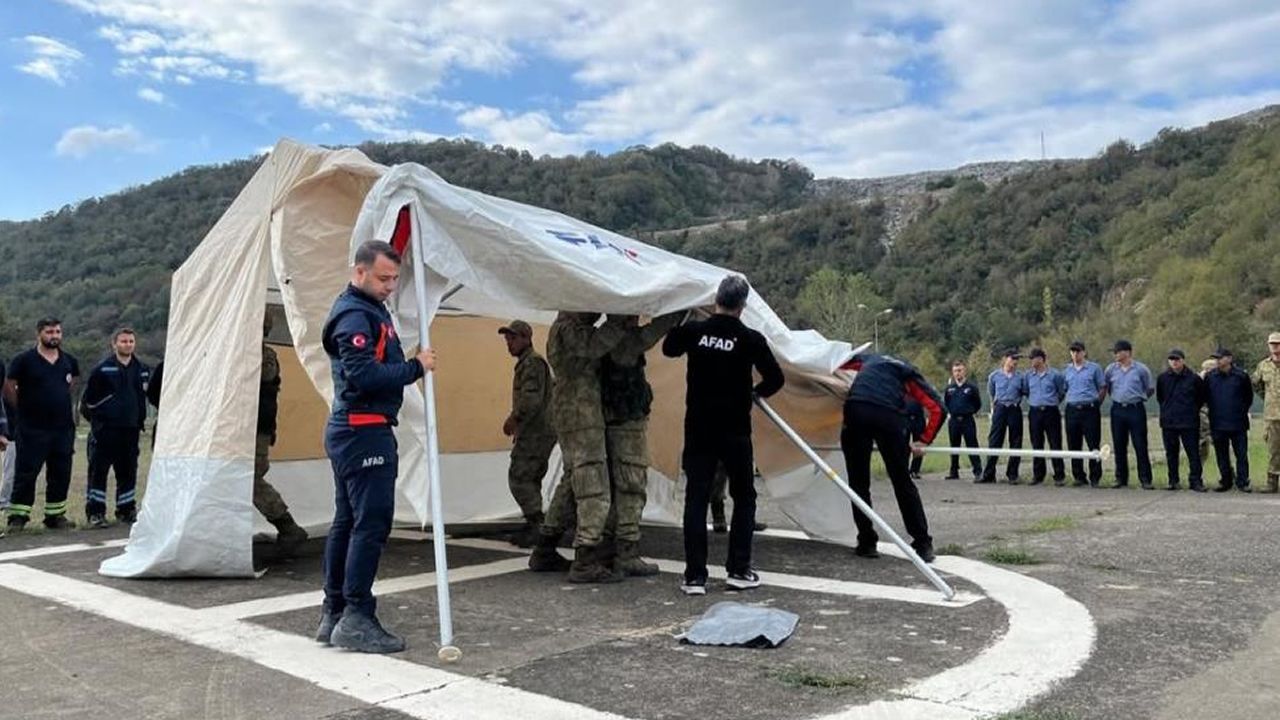 Bartın'da AFAD uzmanları tarafından Deniz Kuvvetleri Komutanlığı personeline çadır kurma eğitimi verildi.
