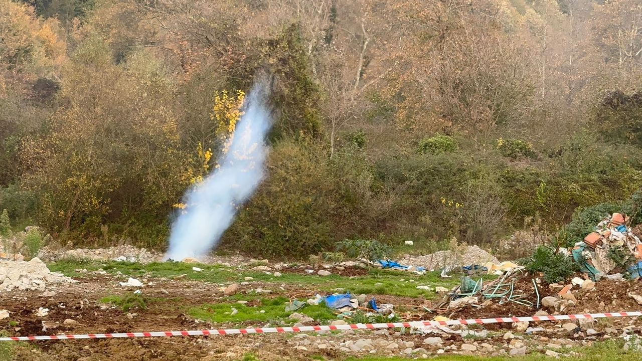 Zonguldak'ın Alaplı ilçesine bağlı Sarıkadı köyünden geçen BOTAŞ'a ait doğalgaz boru hattı, bölgede çalışma yapan iş makinesinin hatta temas etmesi sonucu patladı.