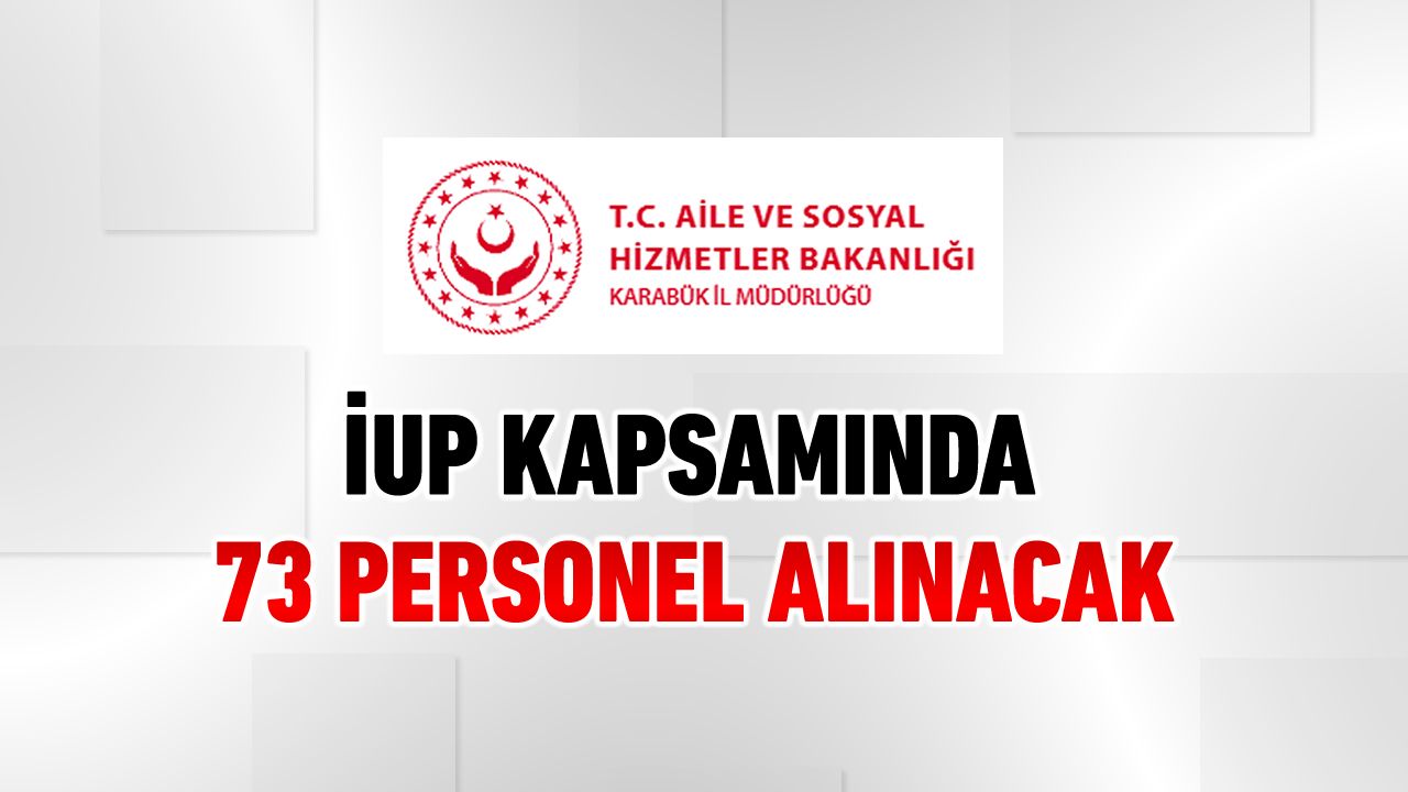 Karabük Aile ve Sosyal Hizmetler İl Müdürlüğü bünyesinde yürütülecek İşgücü Uyum Programı (İUP) kapsamında 73 personel alımı yapılacağı açıklandı.