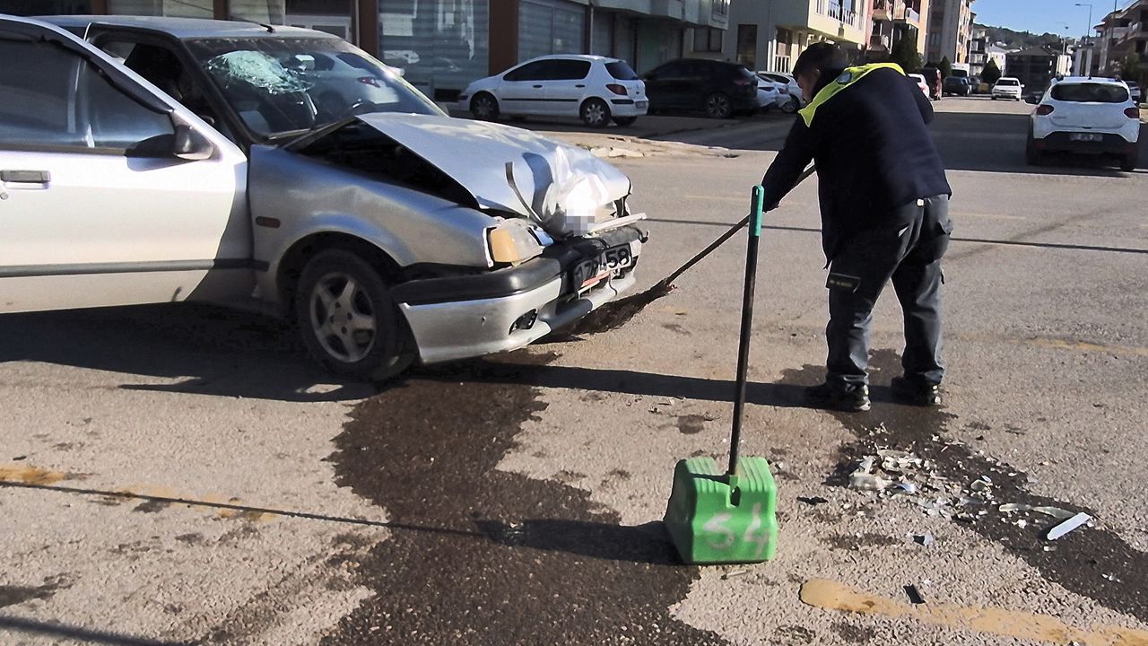 Bartın'da 2 otomobil kavşakta çarpıştı. Güvenlik kamerasına yansıyan kazada 3 kişi yaralandı.