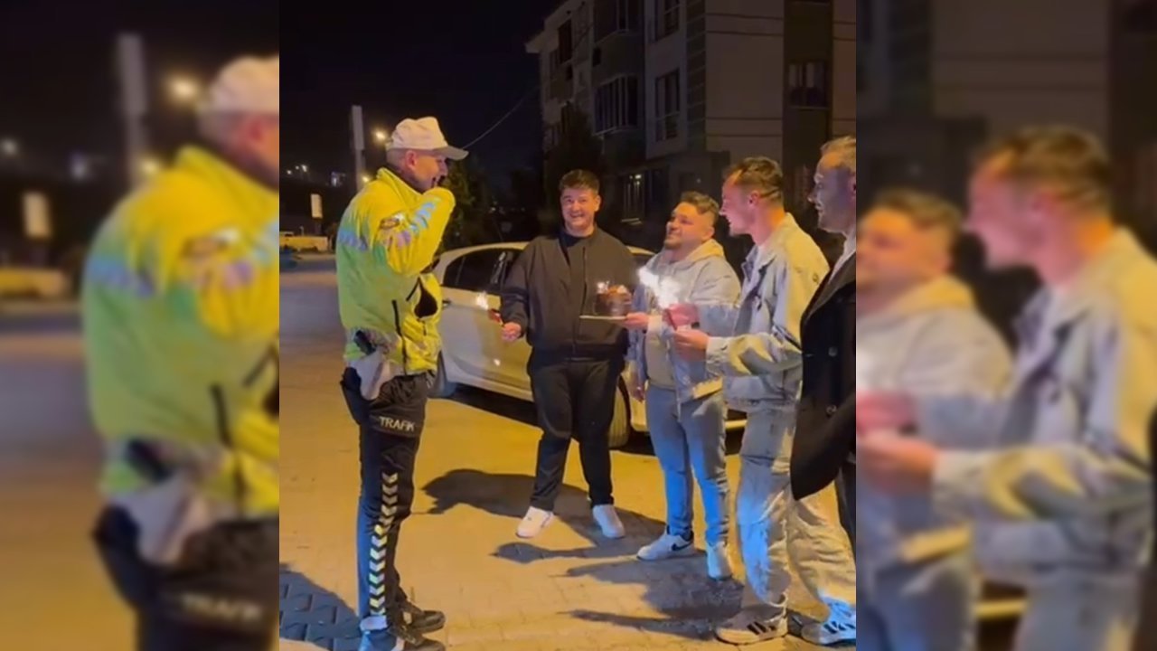O anları cep telefonu kamerasına kaydeden gençler, ülke ve vatandaşlar için gece gündüz çalışan Türk polisine minnetlerini sundu.