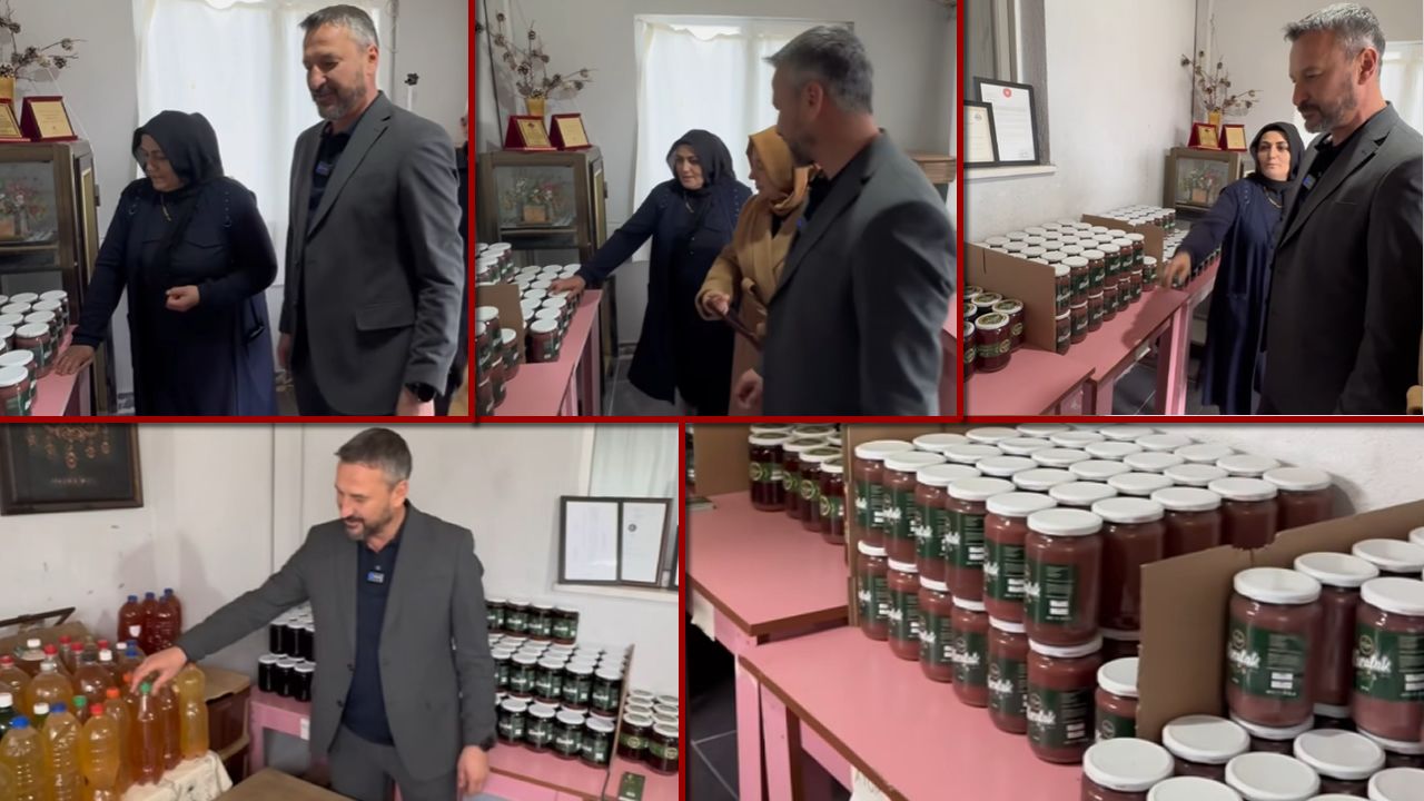 Başkan Cıva bu kapsamda, ilçede yaklaşık on yıldır kozalak pekmezi üretimi yapan kadın girişimciyi ziyaret etti.