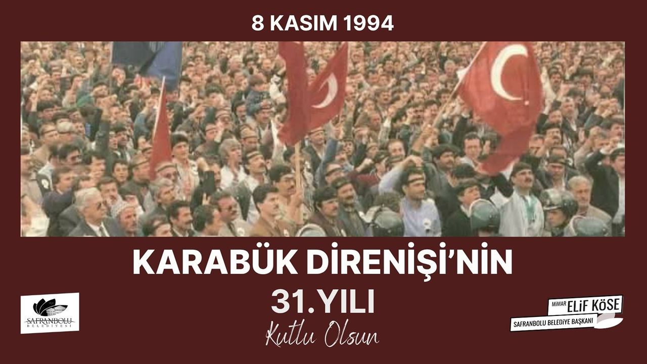 Safranbolu Belediye Başkanı Mimar Elif Köse, Karabük Demir ve Çelik Fabrikaları’nın (KARDEMİR) kapatılma kararına karşı 1994 yılında başlatılan 8 Kasım Direnişi’nin 31. yılı dolayısıyla bir mesaj yayımladı.