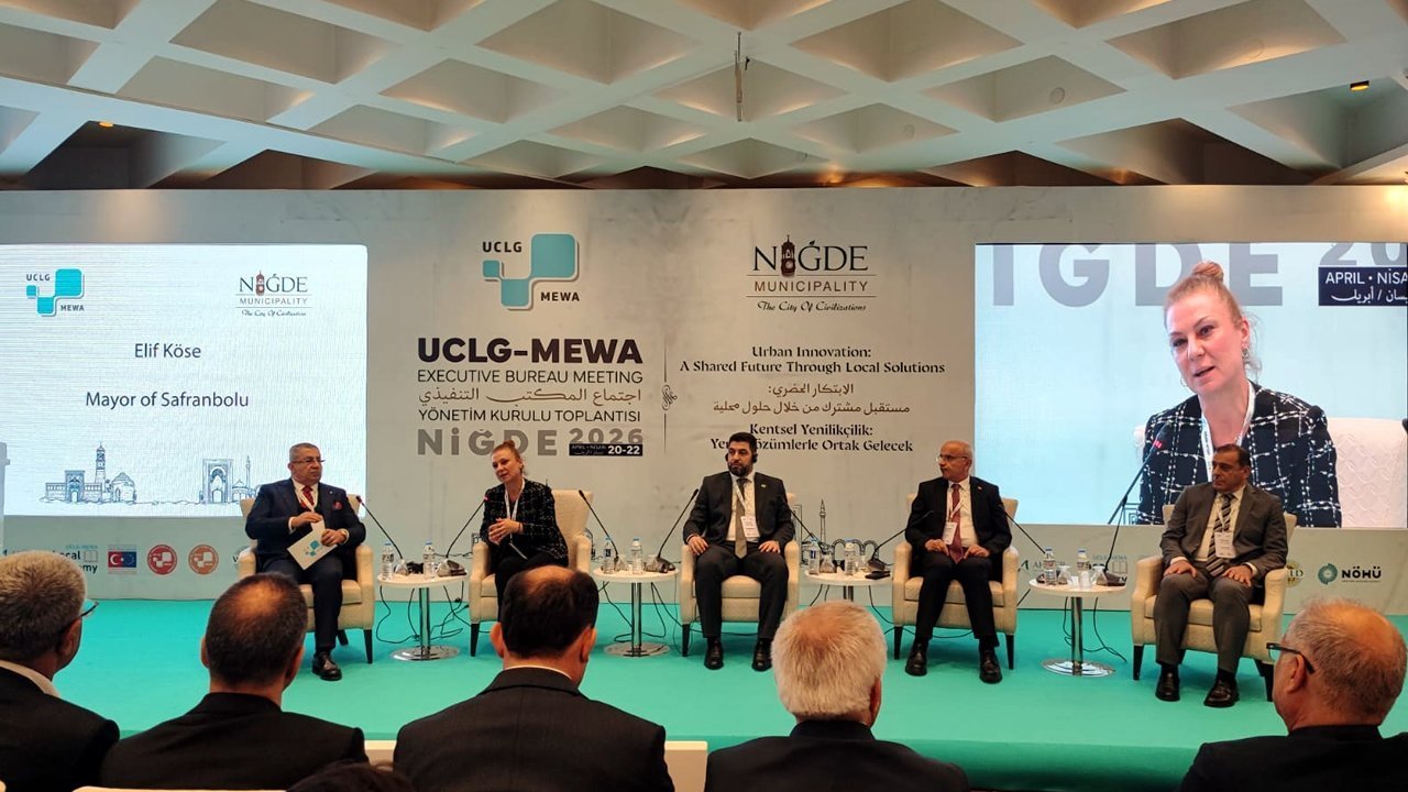 Safranbolu Belediye Başkanı Mimar Elif Köse, Niğde’de düzenlenen Birleşmiş Kentler ve Yerel Yönetimler Orta Doğu ve Batı Asya Bölge Teşkilatı (UCLG-MEWA) Yönetim Kurulu Toplantısı’na katılarak, Safranbolu’da uygulanan yerel yönetim projelerini ve kentsel yenilikçilik çalışmalarını paylaştı.