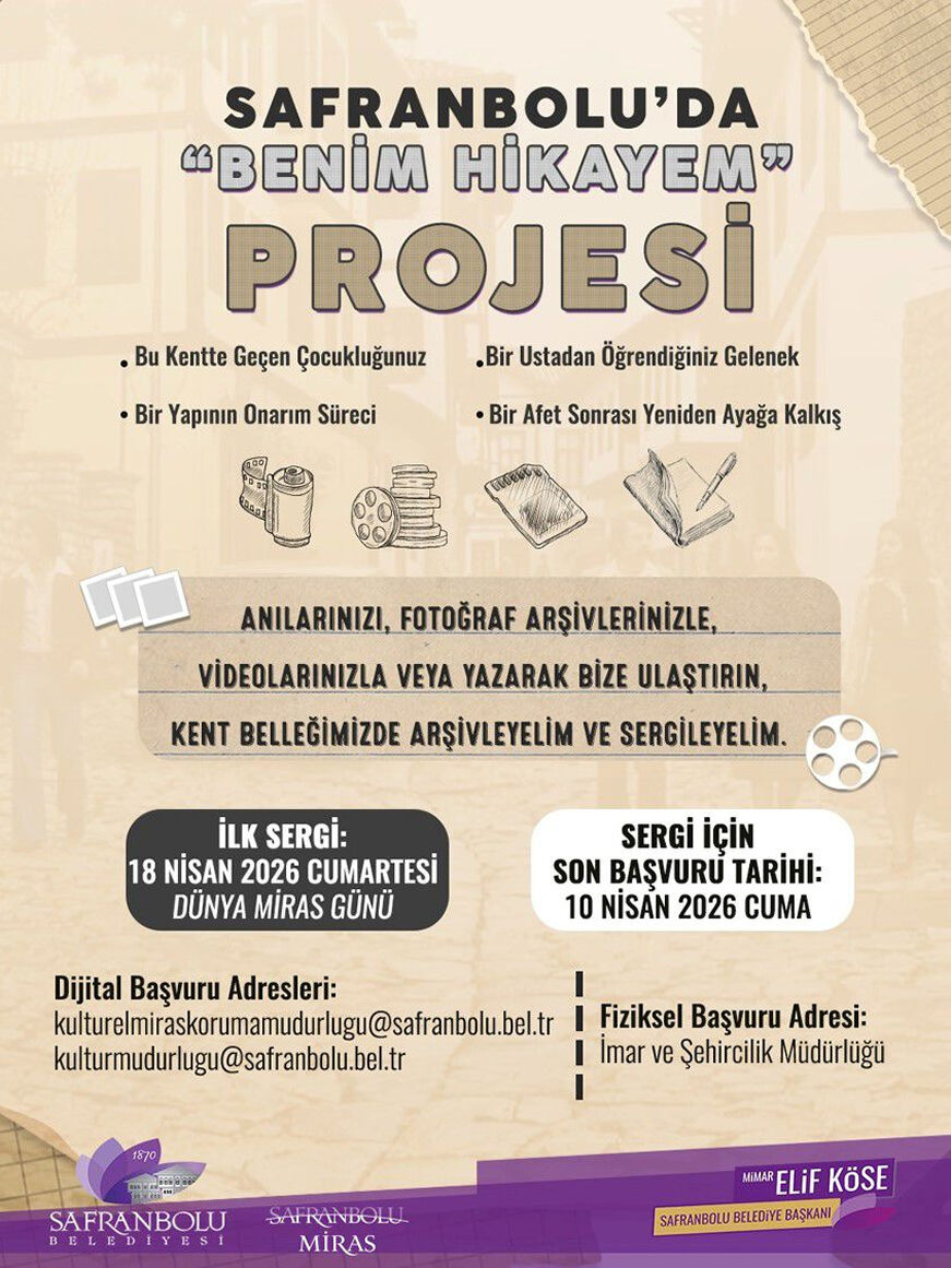 "Sen bu hikayenin neresindesin?" çağrısıyla ve sosyal medyada "#SafranboluBenimHikayem", "#SafranboluMirasıylaYaşıyor" etiketleriyle duyurulan projede yer almak isteyen vatandaşların, en geç 10 Nisan 2026 Cuma gününe kadar başvurularını tamamlamaları gerekiyor.