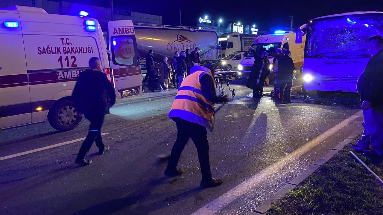 Kaza, D-100 kara yolu Kuruçay mevkiinde meydana geldi. Edinilen bilgiye göre, İstanbul istikametine seyreden Selim T. yönetimindeki 14 S 0224 plakalı servis midibüsü, akan trafikle birlikte hızını düşürdüğü sırada arkasından gelen Ahmet T. idaresindeki 14 S 0232 plakalı servis midibüsü arkadan çarptı. Çarpmanın etkisiyle refüje çıkan 14 S 0224 plakalı midibüs, yan şeritte ilerleyen Aydın S. yönetimindeki 14 S 0238 plakalı otobüse çarptı. Kazada araçlarda bulunan 11 kişi yaralandı. İhbar üzerine olay yerine sağlık, polis ve karayolları ekipleri sevk edildi. Ambulanslarla hastanelere kaldırılan yaralıların hayati tehlikelerinin bulunmadığı öğrenildi. Kaza nedeniyle bir süre kontrollü sağlanan trafik, araçların kaldırılmasının ardından normale döndü.