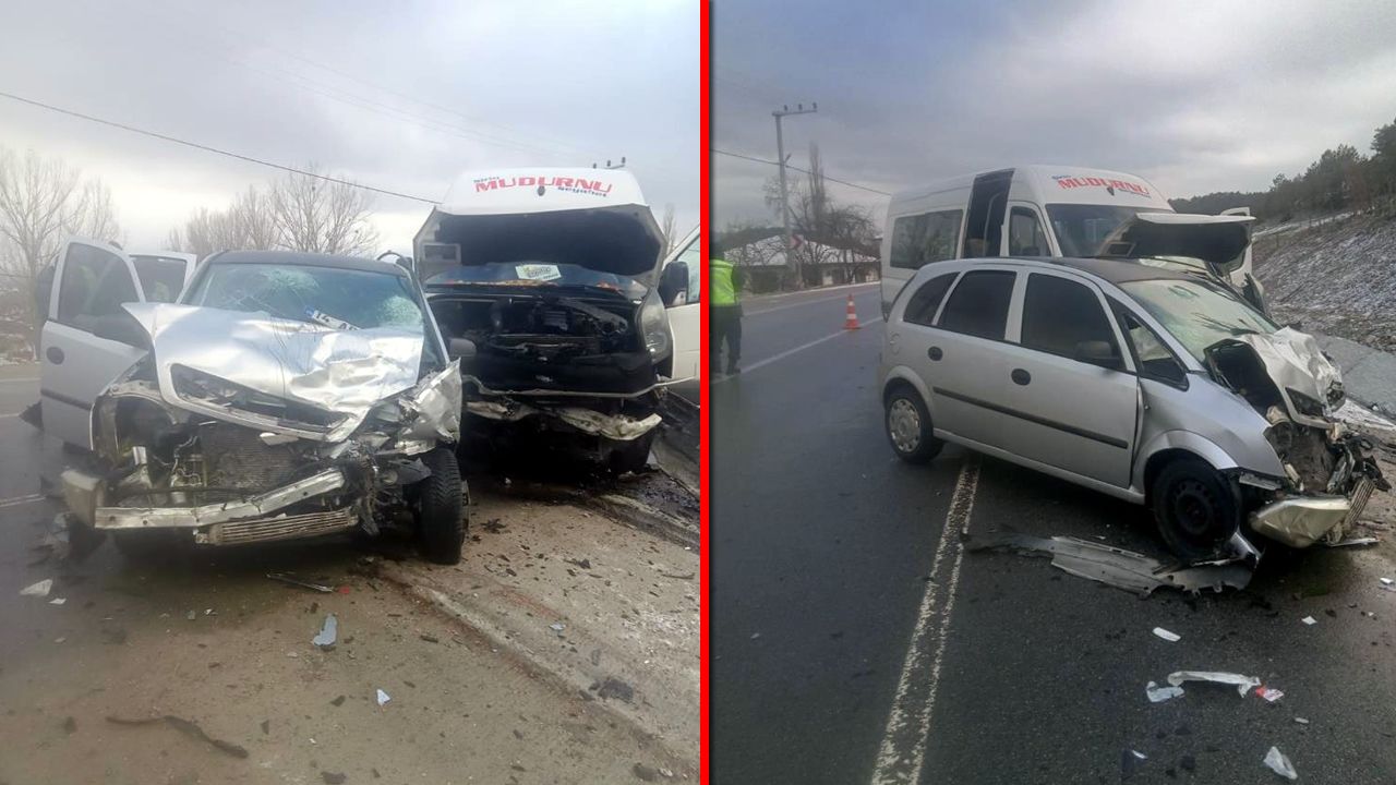 Bolu-Mudurnu kara yolunda otomobil ile minibüsün çarpışması neticesinde meydana gelen kazada 1’i ağır 10 kişi yaralandı.