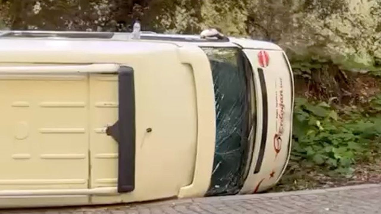 Bolu'nun doğa harikası Yedigöller Milli Parkı'nda içerisinde yolcu bulunmayan minibüs devrildi. Kazada yaralanan olmadı.