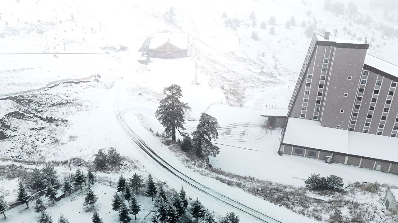 Bolu’nun merkezinde sabah saatlerinden itibaren yağmur yağışı etkili oluyor. Yağmur yağışı yüksek kesimlerde yerini kar yağışına bıraktı. Sabah saatlerinden itibaren etkili olan kar yağışı sebebiyle yeşil alanlarda kar kalınlığı 5 santimetrenin üzerine çıktı. Beyaz örtüyle kaplanan Kartalkaya bölgesi havadan dronla görüntülendi.