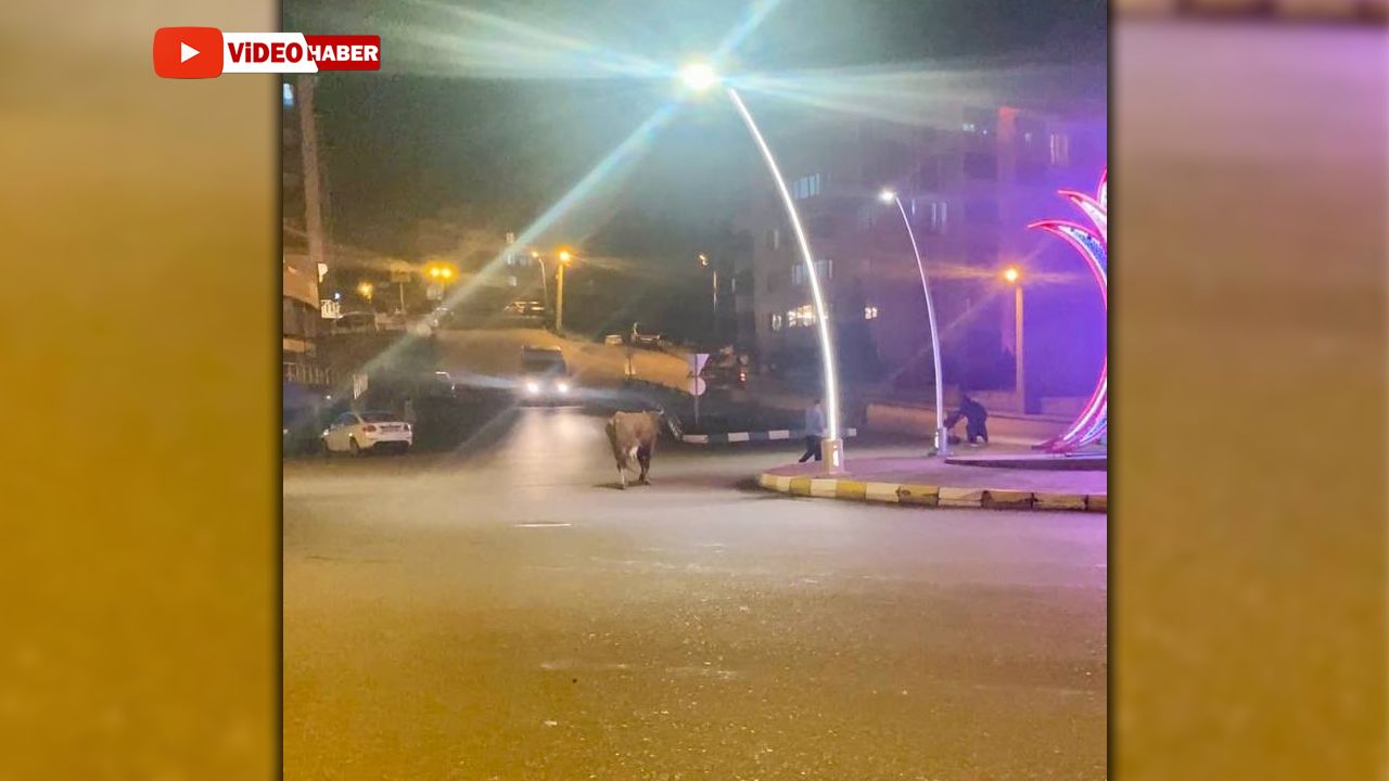 Cumhuriyet Mahallesi Şahintepe mevkisinde caddeye çıkan 3 büyükbaş hayvan bir süre araçların arasında dolaştı. Sürücüler, ilerleyebilmek için hayvanların caddeyi terk etmesini beklemek zorunda kaldı. O anlar, cep telefonu kamerasıyla kaydedildi.