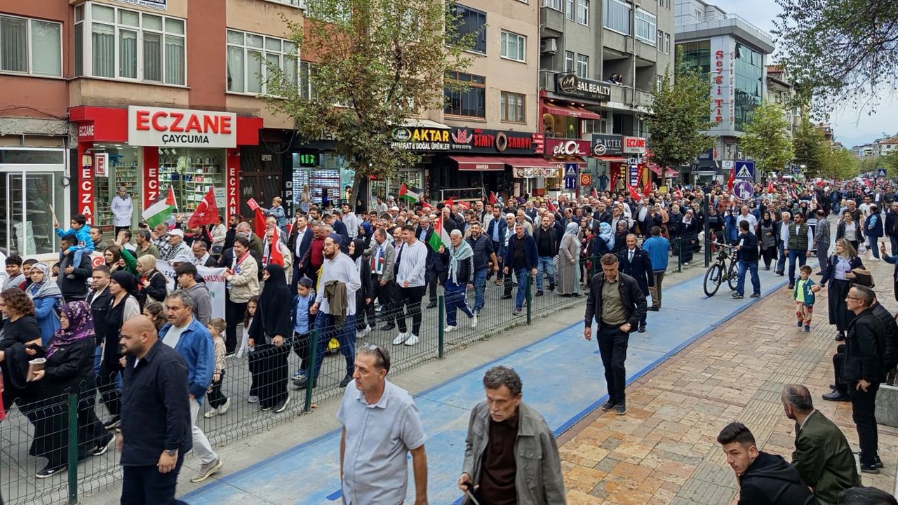 Kur’an-ı Kerim tilaveti ve ilahilerin seslendirildiği yürüyüşe AK Parti Çaycuma İlçe Başkanı Birol Yiğit, Saadet Partisi İlçe Başkanı Engin Zeren ve çok sayıda vatandaş katıldı. Cumhuriyet Meydanı’nda düzenlenen programda konuşan Milli İrade Platformu İlçe Başkanı Adem İnam ve Memur-Sen Eğitim-Bir-Sen Çaycuma Temsilcisi Mehmet Kocaarslan, 7 Ekim 2023’ten bu yana süren İsrail saldırılarının bir soykırıma dönüştüğünü ifade etti.