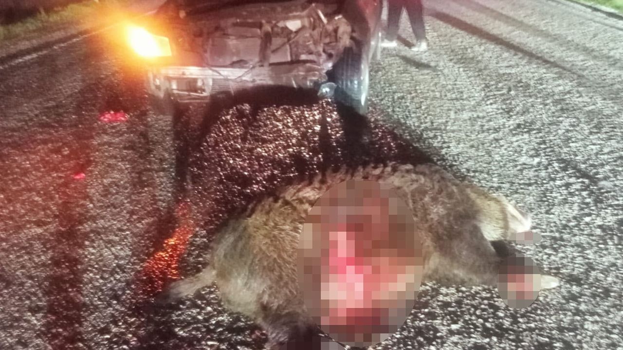 Bolu’nun Mudurnu ilçesinde aniden yola fırlayan domuza çarpan otomobilin sürücüsü yaralandı. Çarpmanın etkisiyle araç hurdaya dönerken, domuz telef oldu.