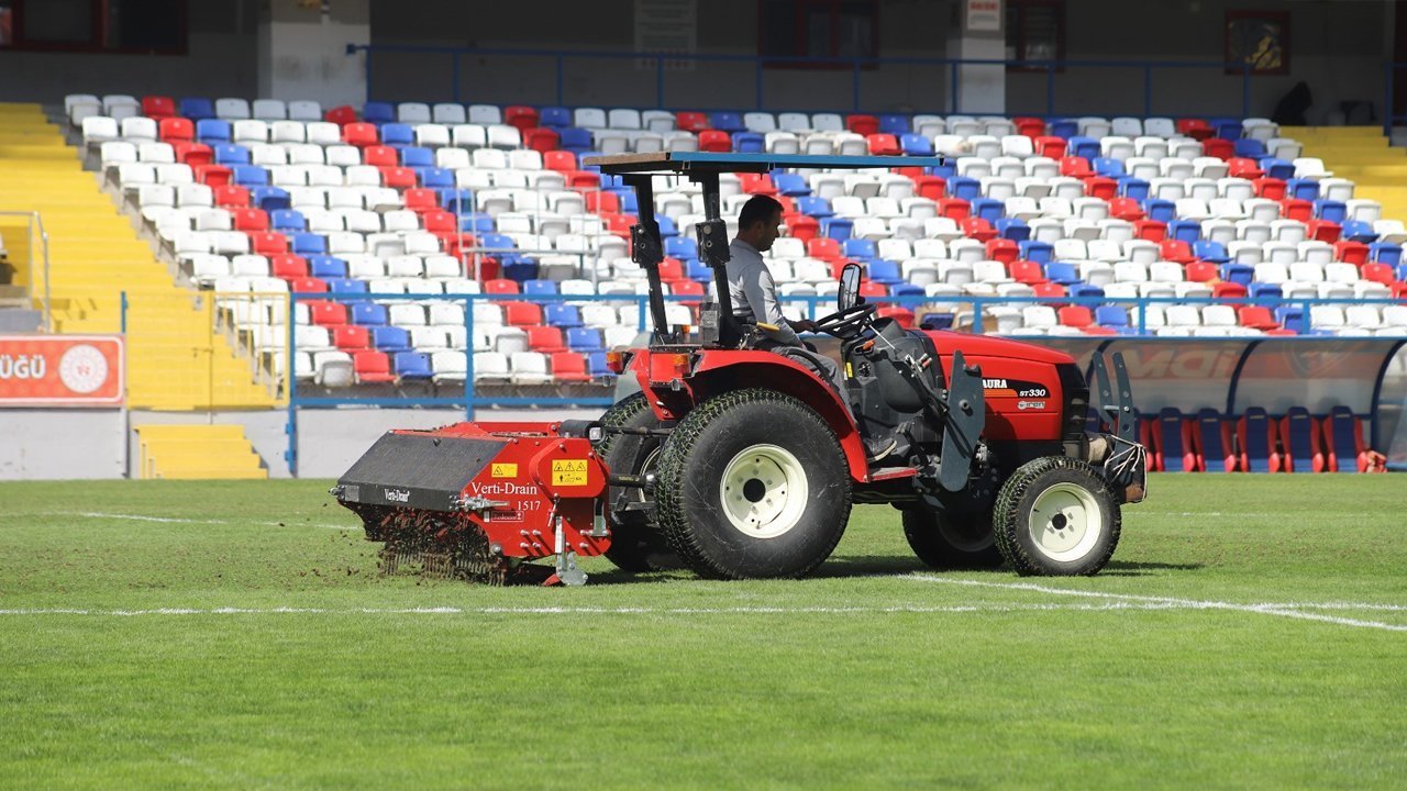 Yoğun maç takvimi ve mevsimsel koşullar nedeniyle yıpranan saha zemininin eski kalitesine kavuşturulması amacıyla yürütülen çalışmalarda; delme yöntemiyle havalandırma, yeni tohum ekimi, gübreleme ve kumlama işlemleri titizlikle uygulanıyor. Yapılan bakım süreciyle çim zemin dinlenmeye alınarak, daha sağlıklı ve dayanıklı bir saha oluşturulması hedefleniyor.