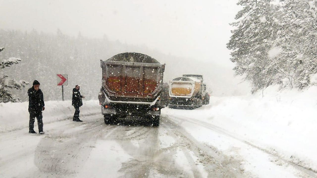 Edinilen bilgilere göre, kar yağışının ardından yollarda oluşan buzlanma nedeniyle seyir halindeki tırlar kontrolden çıkarak kaydı. Tırların yolu kapatması sonucu ulaşımda aksamalar yaşandı.