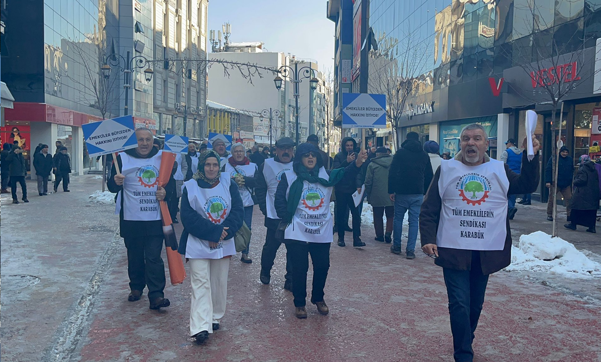 Karabük'te, Tüm Emekliler Sendikası, Kemal Güneş Caddesi'nde eylem gerçekleştirdi. Çok sayıda emeklinin katıldığı eylemede sloganlarla ve pankartlar açıldı. Emeklilerin yaşam koşullarındaki zorlukları ve hükümetin ekonomi politikalarını protesto etmeye yönelik gerçekleştirilen eylemde "Emekliye Açlık, Yandaşa Saltanat: Bu Yağma Düzeni Yıkılacak!" sloganları atıldı.