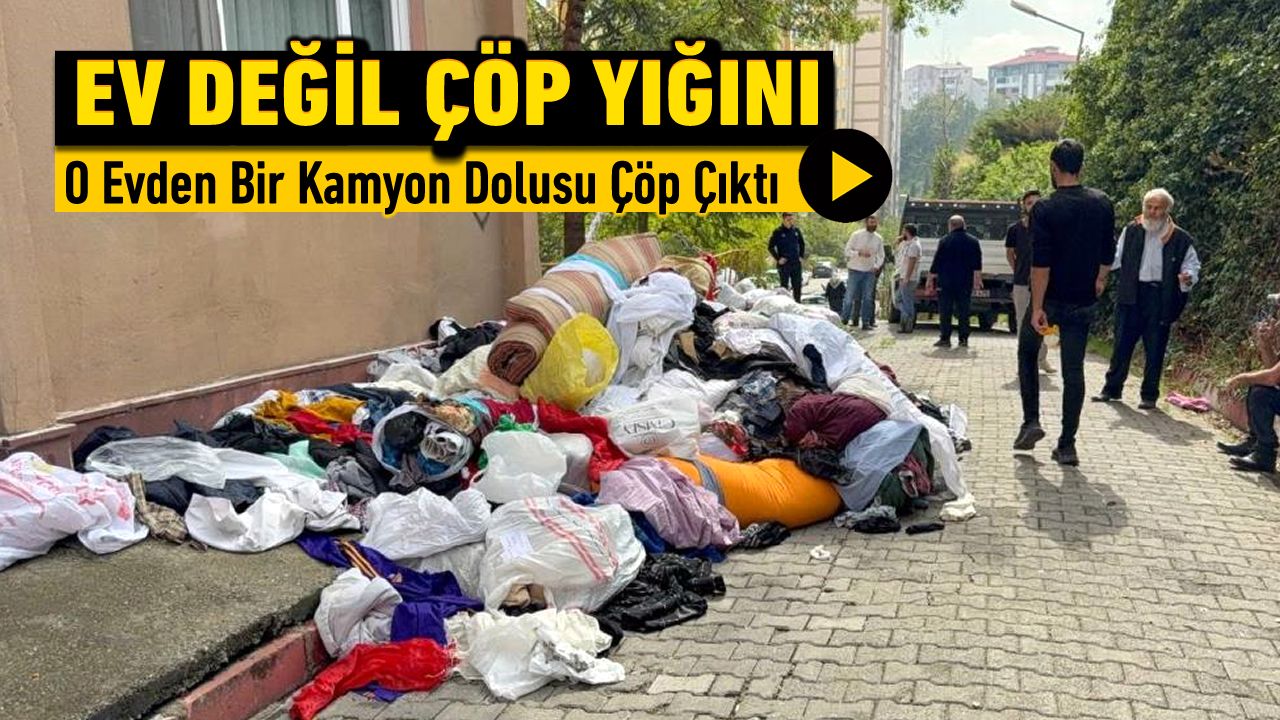 Evde, çuvallar içinde istiflenmiş bir kamyon dolusu çöp bulundu. Ekiplerin binanın camında aşağıya attığı çöpleri kepçe yardımıyla kamyona yüklenerek tahliye edildi.