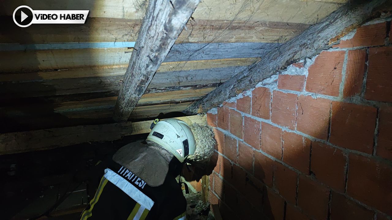 Karabük'ün Safranbolu ilçesinde bir evin çatı katında bulunan yaban arısı yuvası, itfaiye ekiplerinin müdahalesiyle çıkarıldı.