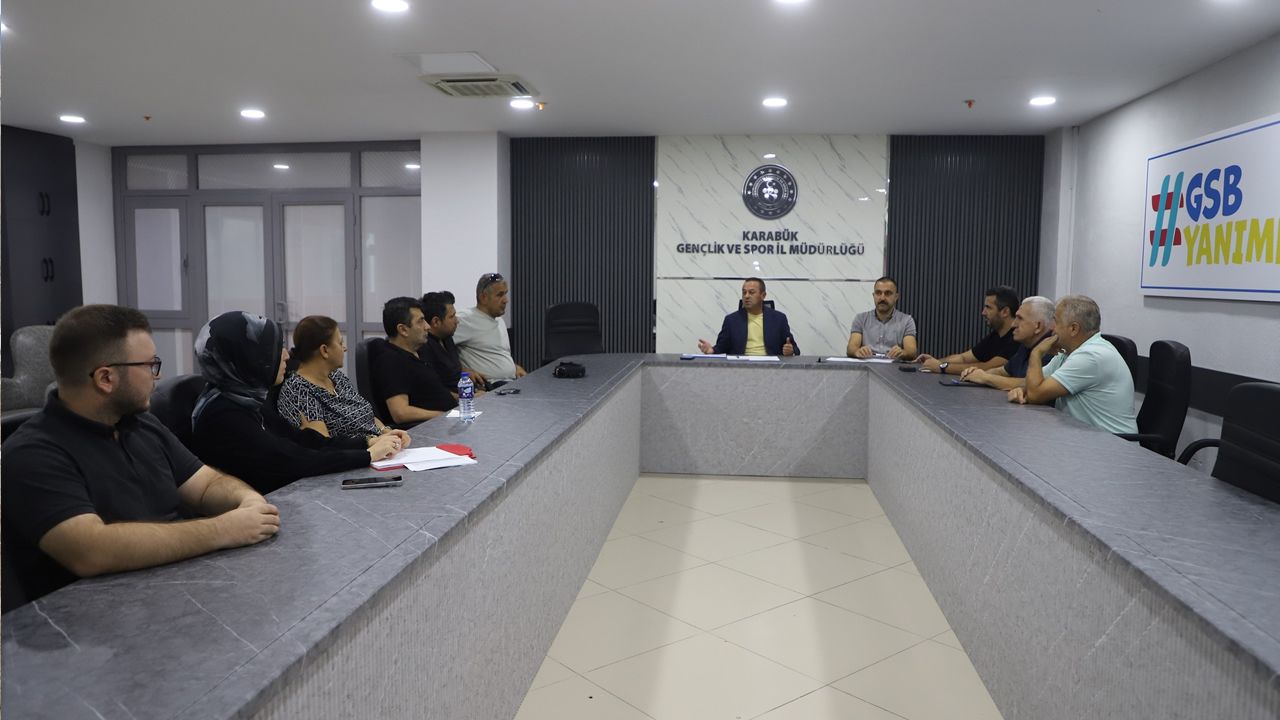 Gençlik ve Spor İl Müdürlüğü’nde, Spor Hizmetleri Müdürü İsmail Özcan başkanlığında önemli bir toplantı gerçekleştirildi. Toplantıya Spor Hizmetleri Şube Müdürü Serdar Ali Osman Sevim ile birlikte il müdürlüğünde görev yapan salon ve saha tesis amirleri katıldı.