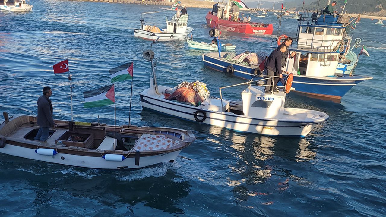 Kastamonu’nun İnebolu ilçesinde balıkçılar, Gazze’ye insani yardım ulaştırmak için yola çıkan Küresel Sumud Filosuna destek amacıyla tekneleriyle Karadeniz’e açıldı. Türk ve Filistin bayraklarıyla donatılan teknelerle denize açılan balıkçılar, İsrail’in filoya yönelik müdahalesine tepki gösterdi. İnebolu Limanı’nda düzenlenen programda bir araya gelen çok sayıda vatandaş ve balıkçı, Filistin halkına destek mesajı verdi. Program kapsamında, Filistin'de hayatını kaybedenler için Kur’an-ı Kerim okunarak dualar edildi. Katılımcılar, ellerinde bayraklarla "Gazze’ye özgürlük" çağrısı yaptı.