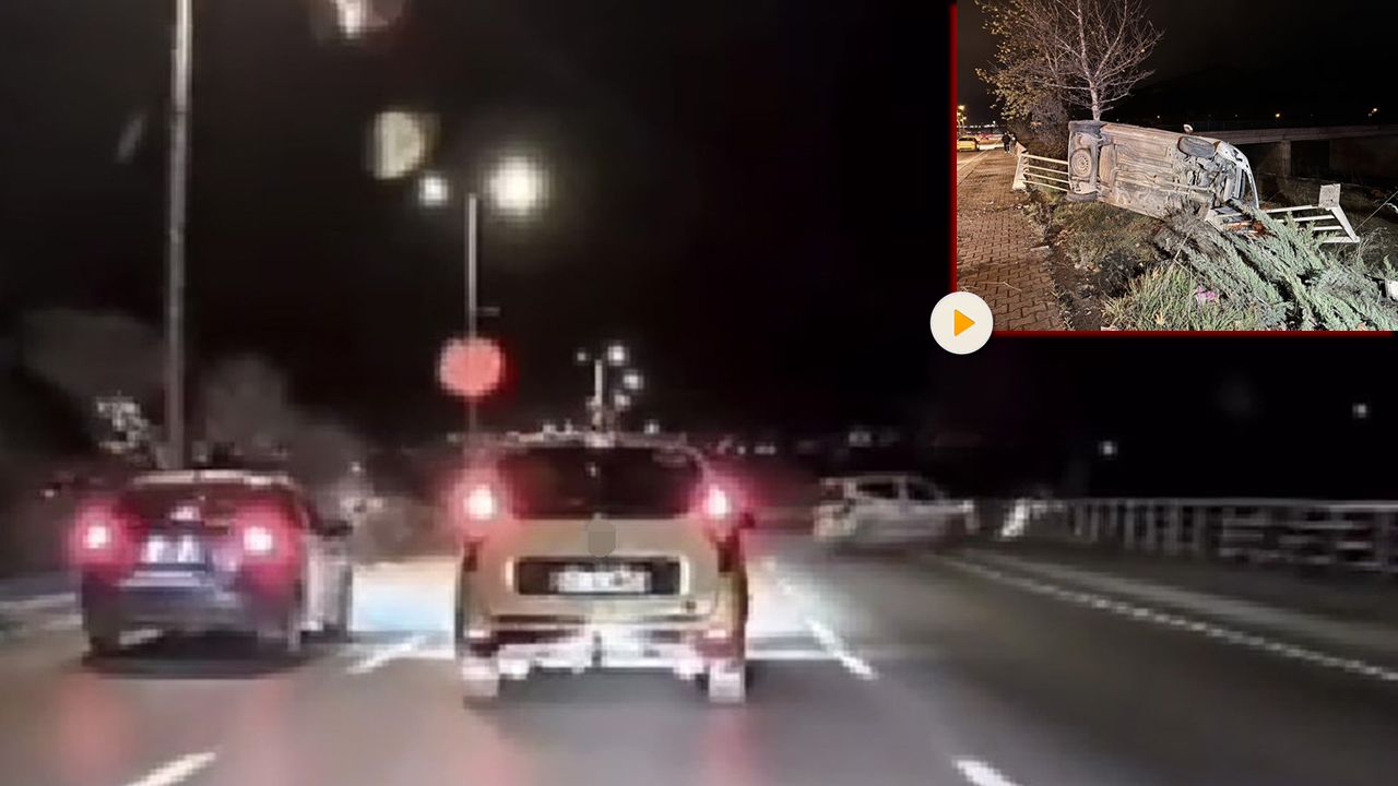 Öte yandan kazanın, başka bir otomobilin araç içi kamerasına yansıdığı görüntüler ortaya çıktı. Görüntülerde, 3 şeritli yolda makas atarak ilerleyen otomobilin sürücüsünün kontrolü kaybetmesi sonucu orta şeritte seyreden hafif ticari araca çarptığı, çarpmanın etkisiyle hafif ticari aracın korkuluklara çarparak devrildiği, otomobilin ise refüje çarparak durduğu anlar yer aldı.