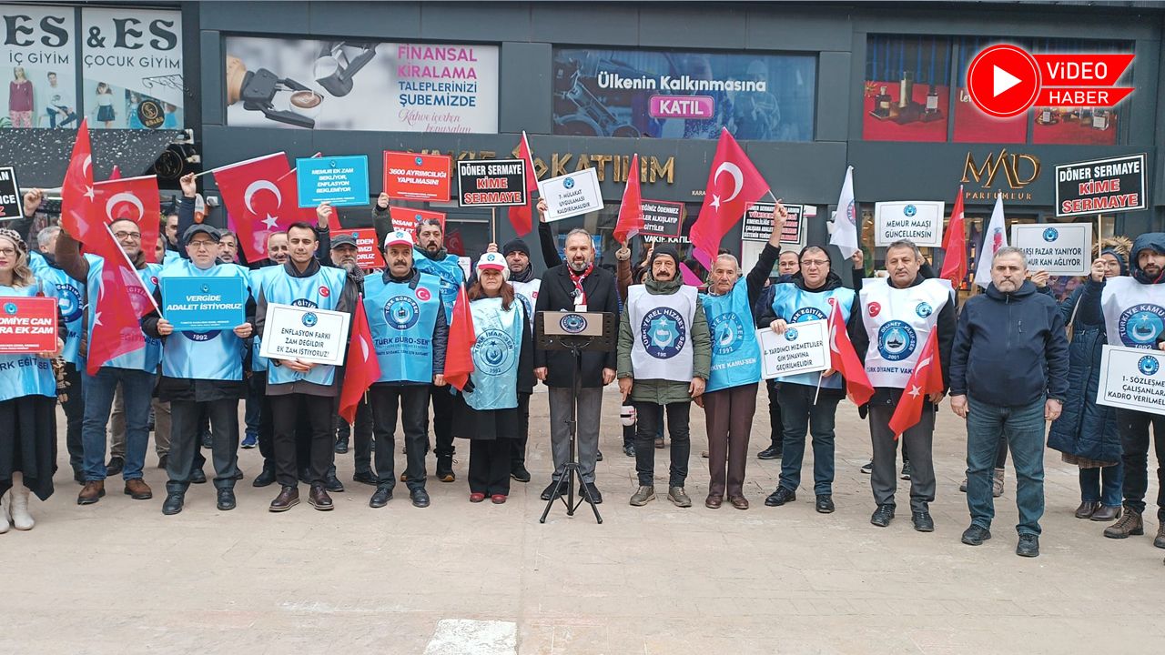 Türkiye Kamu-Sen Karabük İl Temsilcisi Sadık Doğdu, kamu çalışanları ve emeklilerin yaşadığı ekonomik sorunlara dikkat çekmek amacıyla Karabük’te basın açıklaması yaptı. Kamu çalışanlarının katılımıyla gerçekleşen açıklamada Doğdu, maaş artışlarının enflasyonun gerisinde kaldığını vurgulayarak ek zam, refah payı ve adil vergi sistemi çağrısında bulundu.