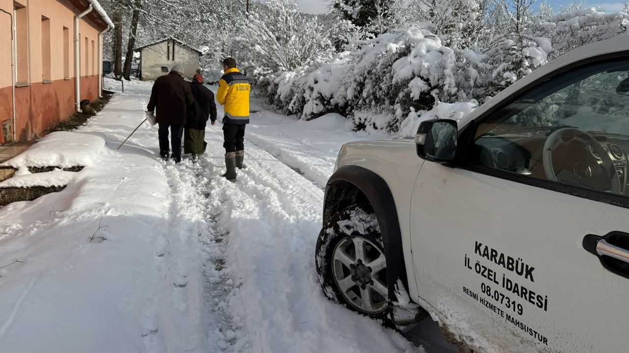 Karabük'te kardan kapanan köy yollarını açan ekipler ambulans ve sağlık hizmetlerinin vatandaşlara kesintisiz ulaşmasını sağladı.