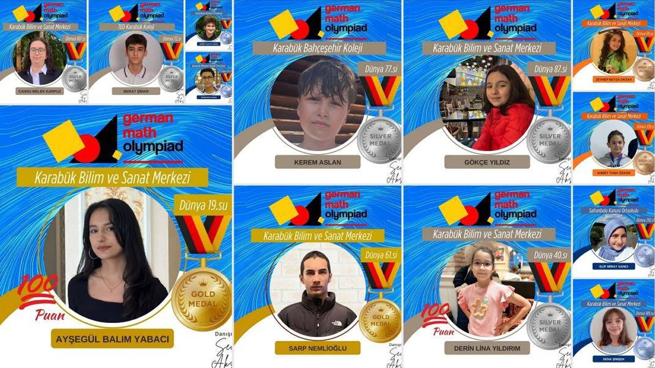 Karabük Bilim ve Sanat Merkezi (BİLSEM) öğrencileri, Alman Matematik Olimpiyatları (International German Math Olympiad) finallerinde elde ettikleri derecelerle Karabük’e ve Türkiye’ye büyük gurur yaşattı. Uluslararası düzeyde gerçekleştirilen yarışmada öğrenciler; 2 tam puan, 2 altın, 5 gümüş, 2 bronz madalya, 4 mansiyon (onur) ödülü ve 4 uluslararası katılım sertifikası kazanarak önemli bir başarıya imza attı.