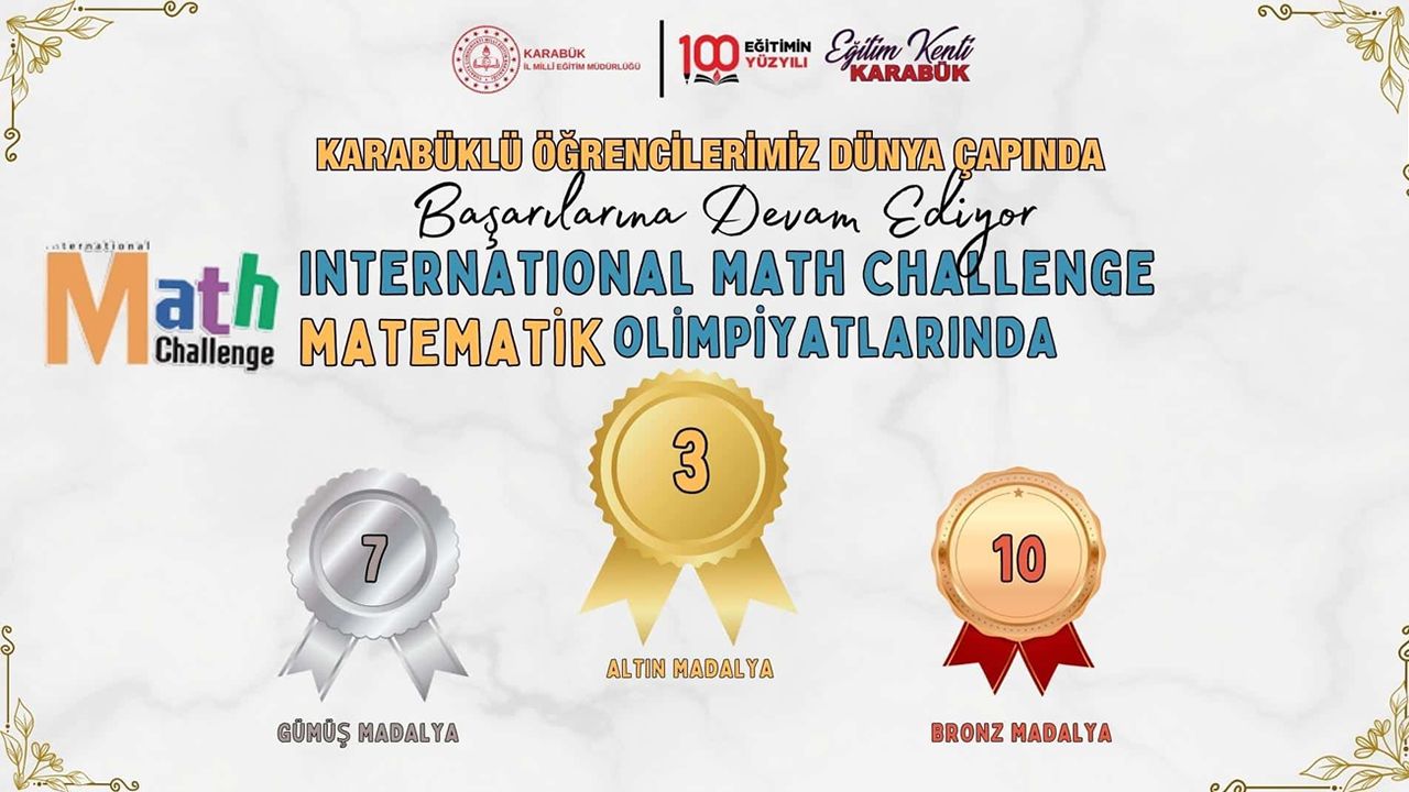 Karabük, Türkiye’de ilk kez düzenlenen Uluslararası Matematik Yarışması International Math Challenge (IMC) 2025’te büyük bir başarıya imza attı. Karabük Bilim ve Sanat Merkezi (BİLSEM) danışmanlığında, Karabük'teki çeşitli okullardan katılan öğrenciler, zorlu yarışmada 3 altın, 7 gümüş ve 10 bronz madalya kazanarak uluslararası arenada fark yarattı.