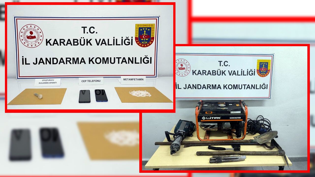 Karabük'te jandarma ekiplerince düzenlenen iki ayrı operasyonda kaçak kazı malzemeleri ile uyuşturucu madde ele geçirilirken 11 şüpheli hakkında işlem yapıldı.
