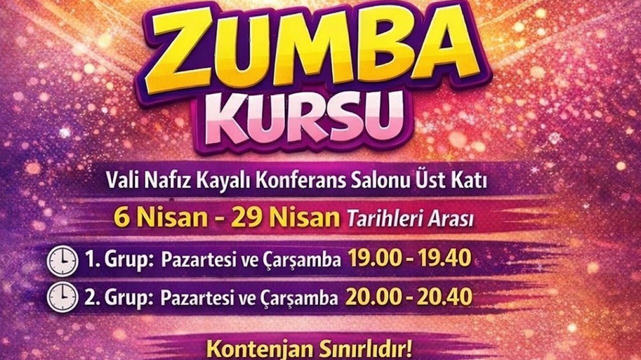 Zumba kursu, Karabük’te bulunan Vali Nafiz Kayalı Konferans Salonu üst katında gerçekleştirilecek. Program, 6 Nisan ile 29 Nisan tarihleri arasında düzenlenecek.