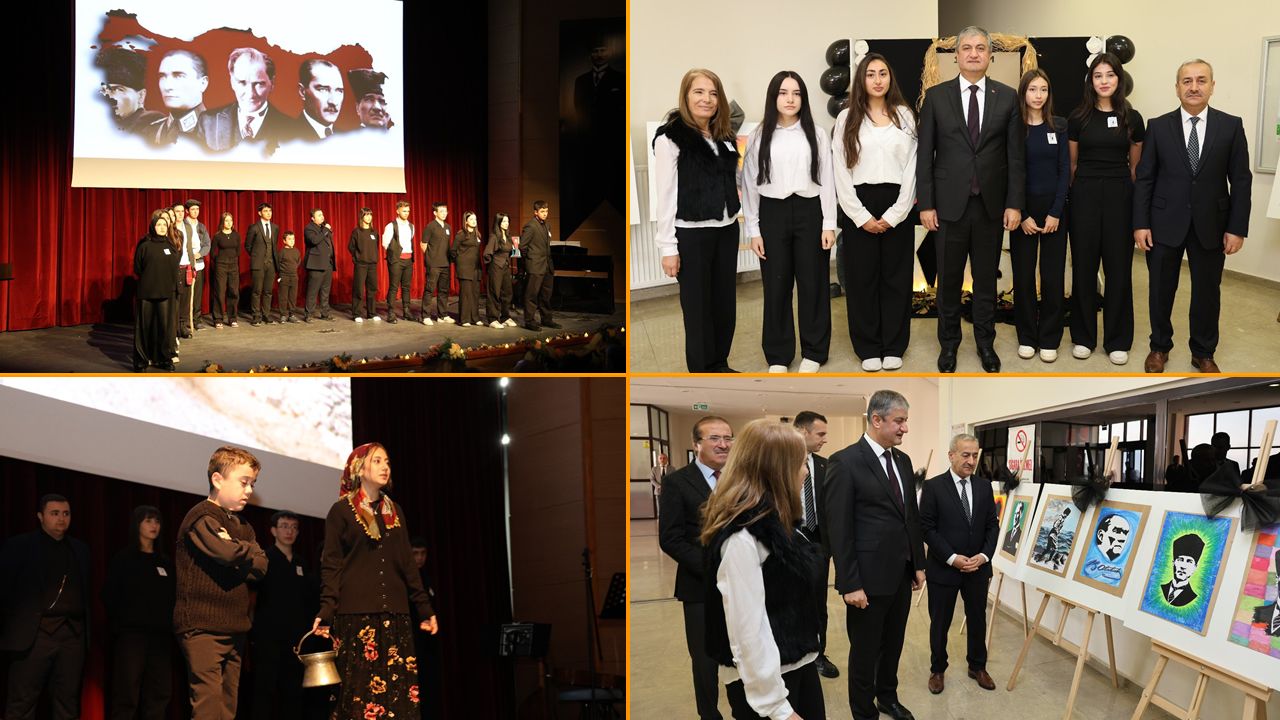 Saygı duruşu ve İstiklal Marşı ile başlayan 10 Kasım Atatürk’ü Anma Programı, şiir, kompozisyon ve konuşmalarla devam etti. Günün anlam ve önemine özel olarak hazırlanan “Kökü Mazide Olan Ati” adlı gösteri ise izleyicilerden tam not aldı.