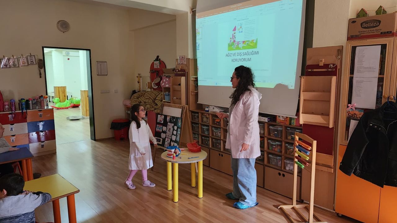 Etkinlikte, çocuklara dişlerini doğru tekniklerle nasıl fırçalamaları gerektiği, diş çürüklerinden korunma yolları ve sağlıklı beslenmenin ağız sağlığı üzerindeki etkileri interaktif sunumlarla anlatıldı.