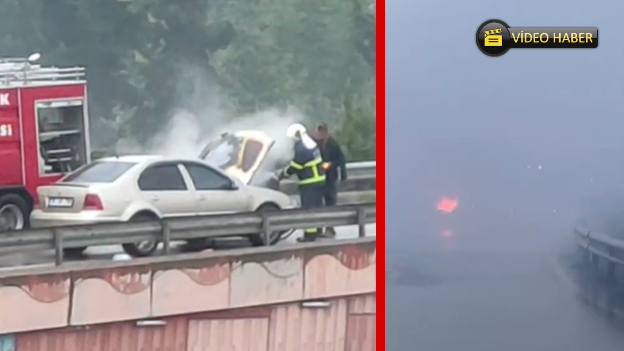 Seyir halindeki otomobilin motor kısmından alevler yükseldi. Araç sürücüsü olayı fark etmesiyle birlikte otomobili kenara çekti.