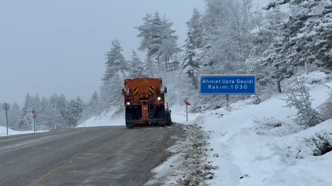 Kar yağışı ve sisin etkili olduğu bölgede oluşan manzara havadan görüntülenirken, Karayolları ekipleri de ulaşımda aksama yaşanmaması için kar küreme ve tuzlama çalışması gerçekleştirdi.