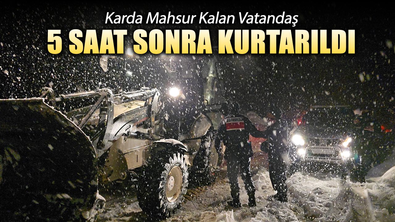 Olay, Bulak Mağarası yolunda meydana geldi. Arif Kuru (62) isimli vatandaş kar yağışının yolun olduğu bölgede aracıyla mahsur kaldı. Durumun bildirilmesi üzerine Safranbolu Belediyesine bağlı ekipler kar küreme işlemleri yaparak vatandaşa ulaştı. Yaklaşık 5 saatlik bekleyişin ardından kurtarılan Kuru, jandarma ekiplerince güvenli bölgeye götürüldü.