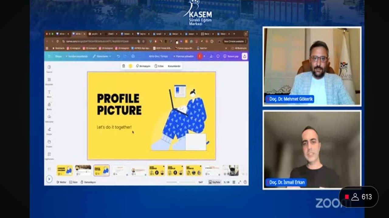 Karabük Üniversitesi Sürekli Eğitim Uygulama ve Araştırma Merkezi (KASEM) tarafından çevrim içi düzenlenen "Yapay Zekâ ile Etkili LinkedIn Kullanımı" semineri yoğun ilgi gördü.