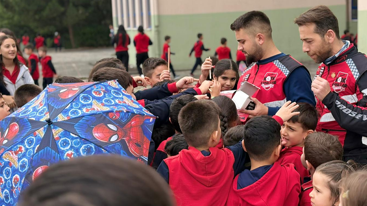 Karabük’te aktif sosyal sorumluluk çalışmalarıyla tanınan Kask Kafalılar Motosiklet Derneği, geleceğin bilinçli bireylerini yetiştirmek amacıyla “Dilimiz Sevgi, Yolumuz İyilik” projesi kapsamında öğrencilere trafik güvenliği ve farkındalık eğitimi vermeye devam ediyor.
