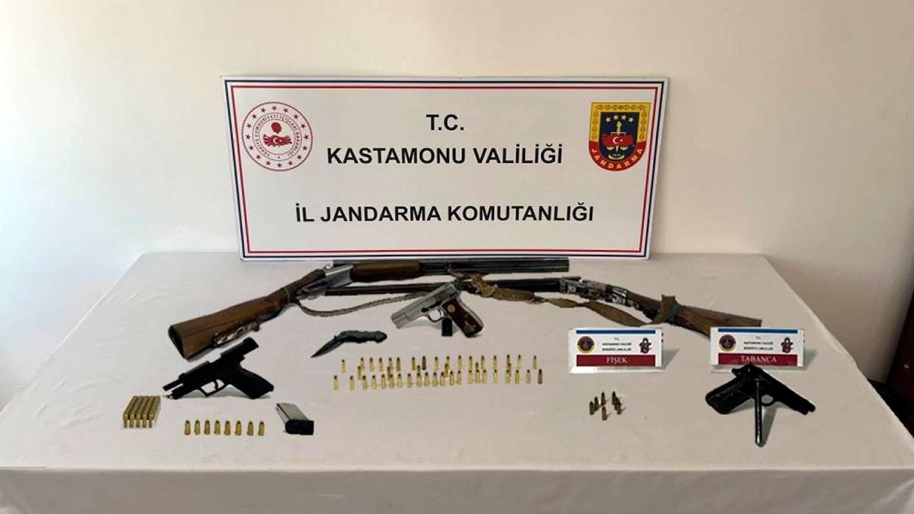 Edinilen bilgiye göre, Kastamonu İl Jandarma Komutanlığı ekiplerince genel güvenliğin kasten tehlikeye sokulması suçu kapsamında yapılan çalışmalarda; O.T., İ,Ç. ve A.A. isimli şüphelilerin ikametlerinde ve üstlerinde arama yapıldı. Yapılan aramalarda 3 adet ruhsatsız tabanca ve tabanca şarjörü ile 109 adet tabanca fişeği ele geçirildi.