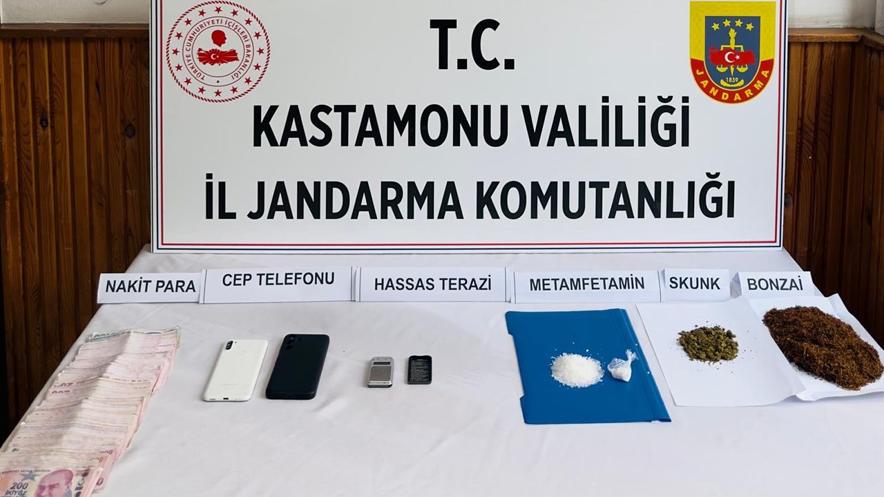 Edinilen bilgiye göre, Kastamonu İl Jandarma Komutanlığı ekipleri tarafından uyuşturucu ile mücadele kapsamında tespiti yapılan F.Ş. isimli şüpheliye yönelik operasyon düzenlendi. Gerçekleştirilen operasyonda 29 gram metamfetamin, 93 gram bonzai, 11 gram skunk, 1 adet hassas terazi, 2 adet cep telefonu ve SIM kartı ile 37 bin 580 TL nakit para ele geçirildi.