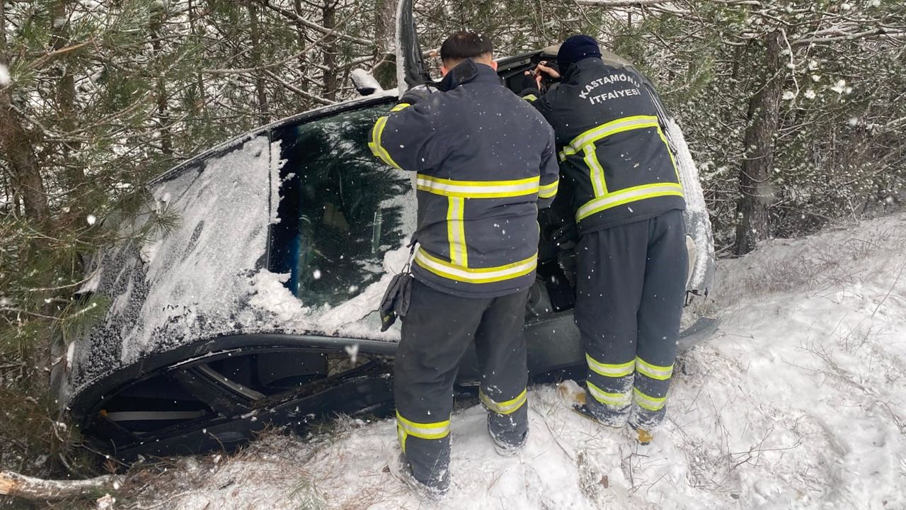 Kastamonu'da otomobilin şarampole yuvarlanması neticesinde meydana gelen kazada 2 kişi yaralandı.