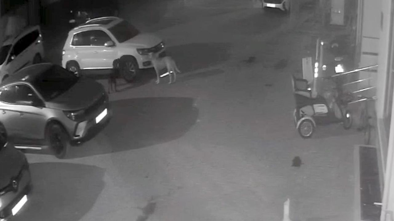 Öte yandan, sokak köpeklerin araca zarar verdiği anlar güvenlik kamerasına yansıdı. Görüntülerde köpeklerin aracın yanına geldiği ve plastik aksamlarını ısırarak parçaladığı görülüyor. Köpekler bir süre sonra aracın yanından uzaklaşıyor.