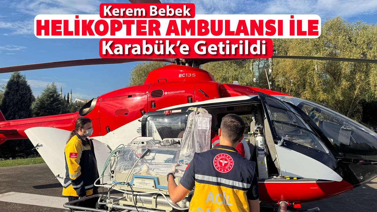 Ankara Bilkent Şehir Hastanesi Yenidoğan Yoğun Bakım Ünitesi’nde 170 gündür tedavi gören Bronkopulmoner Displazili ve entübe durumda bulunan Kerem bebek, Sağlık Bakanlığı’na bağlı hava ambulansı (helikopter) ile Karabük Eğitim ve Araştırma Hastanesi Yenidoğan Yoğun Bakım Ünitesi’ne nakledildi.