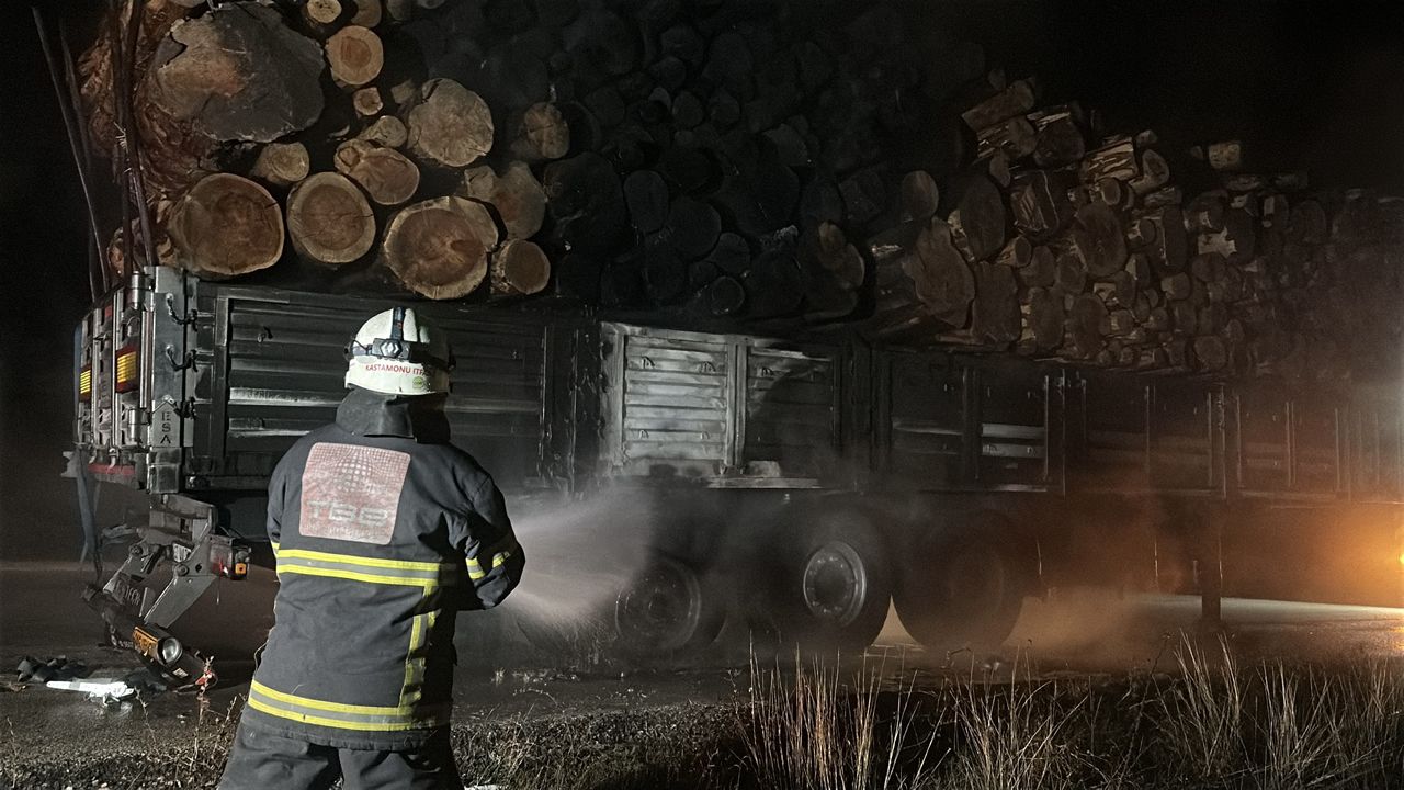 Olay, Ankara-Kastamonu karayolu Kadı Dağı mevkiinde meydana geldi. Edinilen bilgiye göre, Çankırı’dan Kastamonu’da bulunan bir fabrikaya tomruk taşıyan İ.Ş. idaresindeki 37 AAY 716 plakalı tırın dorsesinin lastiklerinden yangın çıktı. Durumu fark eden sürücü, tırı yol kenarında durdurarak 112 Acil Çağrı Merkezini aradı. İhbar üzerine olay yerine gelen itfaiye ekiplerinin müdahalesiyle, tomruklara da sıçrayan yangın söndürüldü.