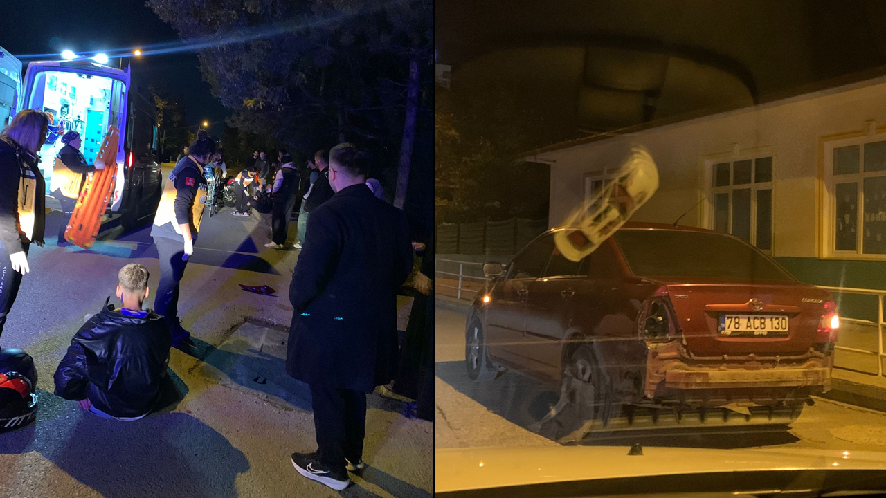 Karabük’ün Yenişehir Mahallesi, Fatih Caddesi üzerinde gece saatlerinde meydana gelen trafik kazasında, bir motosiklet otomobile arkadan çarptı. Olayda motosiklette bulunan iki kişi hafif şekilde yaralandı.