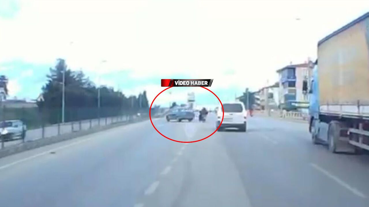 Karabük'te ani manevra yapan motosiklete çarpmamak için direksiyonu kıran sürücünün kontrolünden çıkan otomobil refüje çarptı. Kaza anı araç kamerasına yansıdı.
