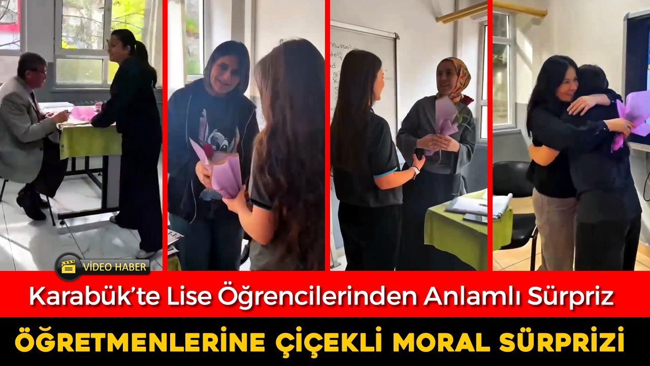 Karabük'te Kıymet ve Mustafa Yazıcı Anadolu Lisesi 10/B sınıfı öğrencileri, son günlerde okullara yönelik yaşanan üzücü olaylara kayıtsız kalmayarak anlamlı bir etkinliğe imza attı. Öğrenciler, öğretmenlerine moral vermek amacıyla sınıfça bir araya gelerek çiçek aldı. Hazırlıklarını gizlilik içinde sürdüren öğrencilerin sürprizi, öğretmenleri duygulandırırken yüzlerde tebessüm oluşturdu. Gerçekleştirilen etkinlik öğrenciler tarafından video haline getirilerek kayıt altına alındı. Okulun sosyal medya hesabında paylaşılan görüntüler kısa sürede beğeni topladı.