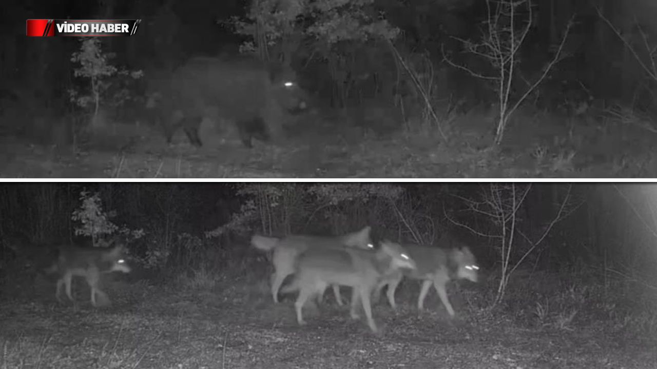 Karabük'ün Ovacık ilçesinde kurt sürüsü ve yaban domuzları fotokapana yansıdı.