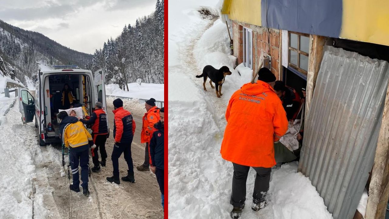 Kastamonu’nun Azdavay ilçesine bağlı Çocukören köyü Tekke Mahallesi'nde rahatsızlanan yaşlı kadının yakınları 112 Acil Çağrı Merkezi'ni arayarak yardım istedi. Köy yolunun kar yağışı sebebiyle kapalı olmasından dolayı, bölgeye Kastamonu İl Afet ve Acil Durum Müdürlüğü (AFAD) ekipleri sevk edildi. AFAD’a ait paletli kar üstü aracıyla köye ulaşan ekipler, yaşlı kadını evinden alarak ambulansa teslim etti.