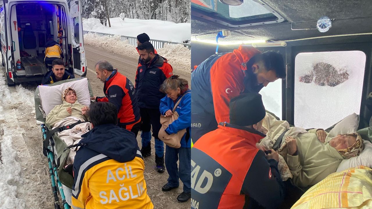 Kastamonu’nun Azdavay ilçesine bağlı Çocukören köyü Tekke Mahallesi'nde rahatsızlanan yaşlı kadının yakınları 112 Acil Çağrı Merkezi'ni arayarak yardım istedi. Köy yolunun kar yağışı sebebiyle kapalı olmasından dolayı, bölgeye Kastamonu İl Afet ve Acil Durum Müdürlüğü (AFAD) ekipleri sevk edildi. AFAD’a ait paletli kar üstü aracıyla köye ulaşan ekipler, yaşlı kadını evinden alarak ambulansa teslim etti.
